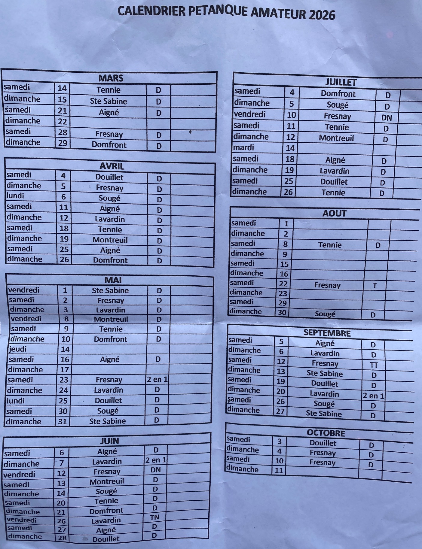 Association Pétanque Fresnoise Fresnay-sur-Sarthe