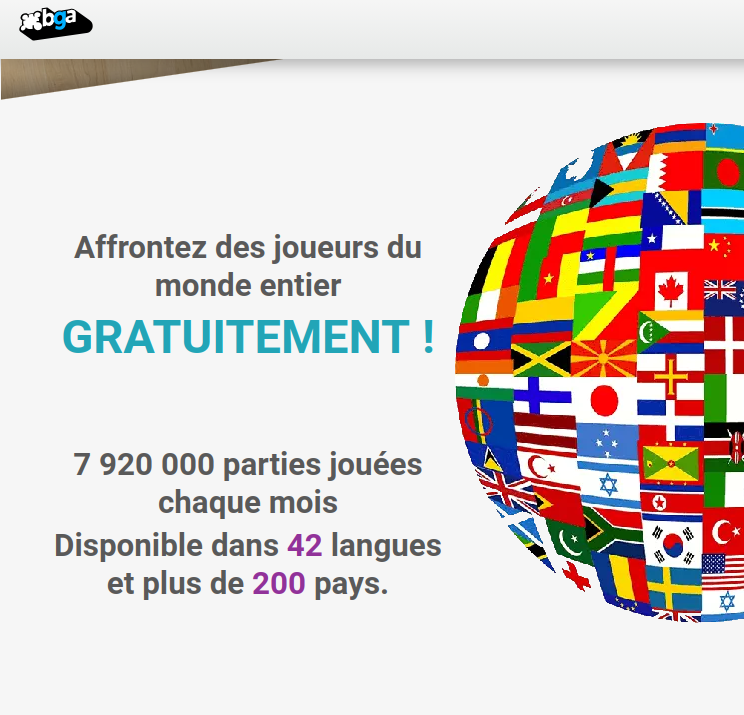 Board Game Arena (BGA) est une plateforme de jeux de société en ligne. Avec BGA, les joueurs peuvent jouer en ligne avec d'autres joueurs du monde entier. Un large choix de jeux de société et jeux de cartes est disponible. Pour jouer, un navi...